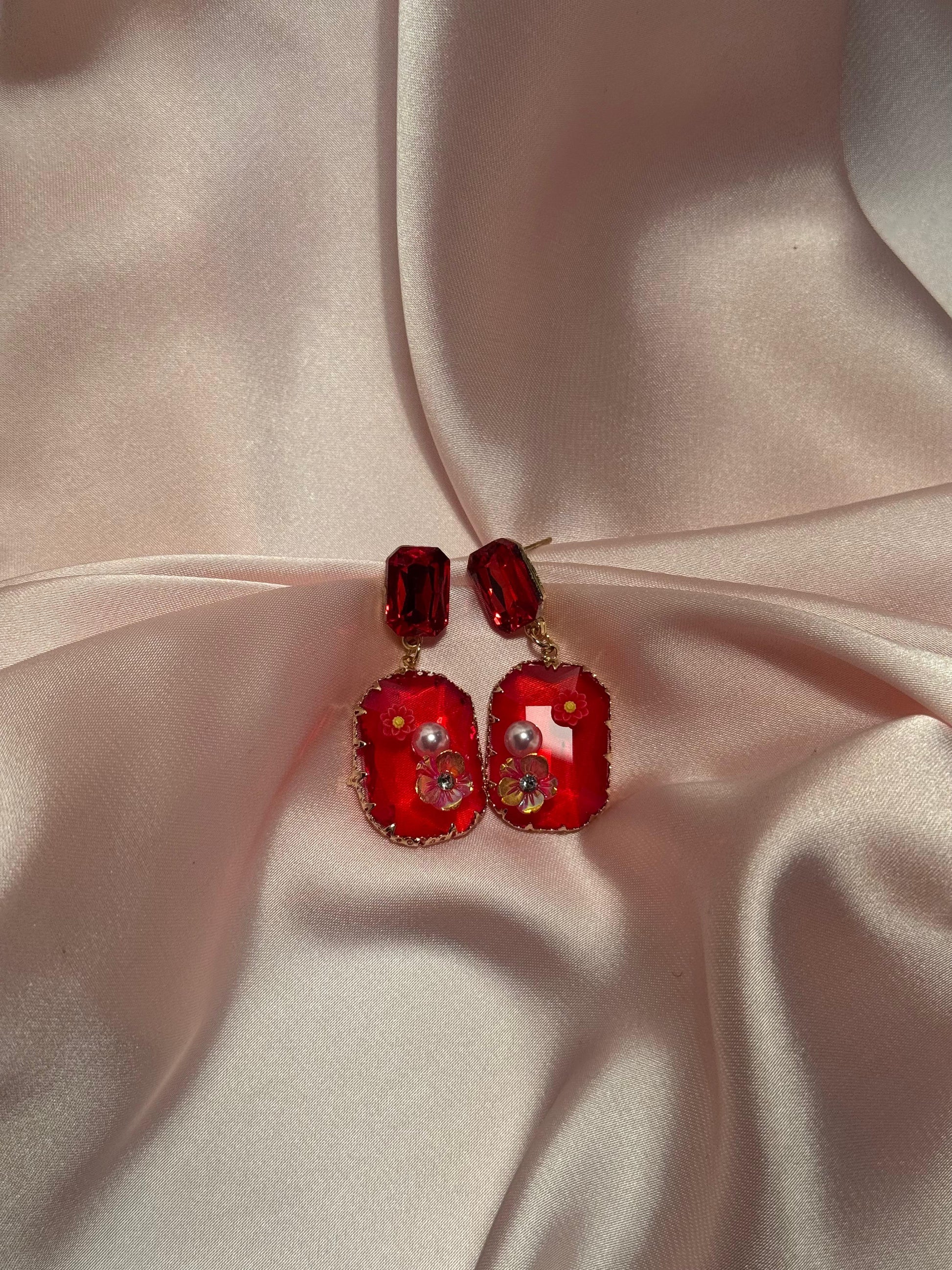 Enamel Floral Rectangle-red
