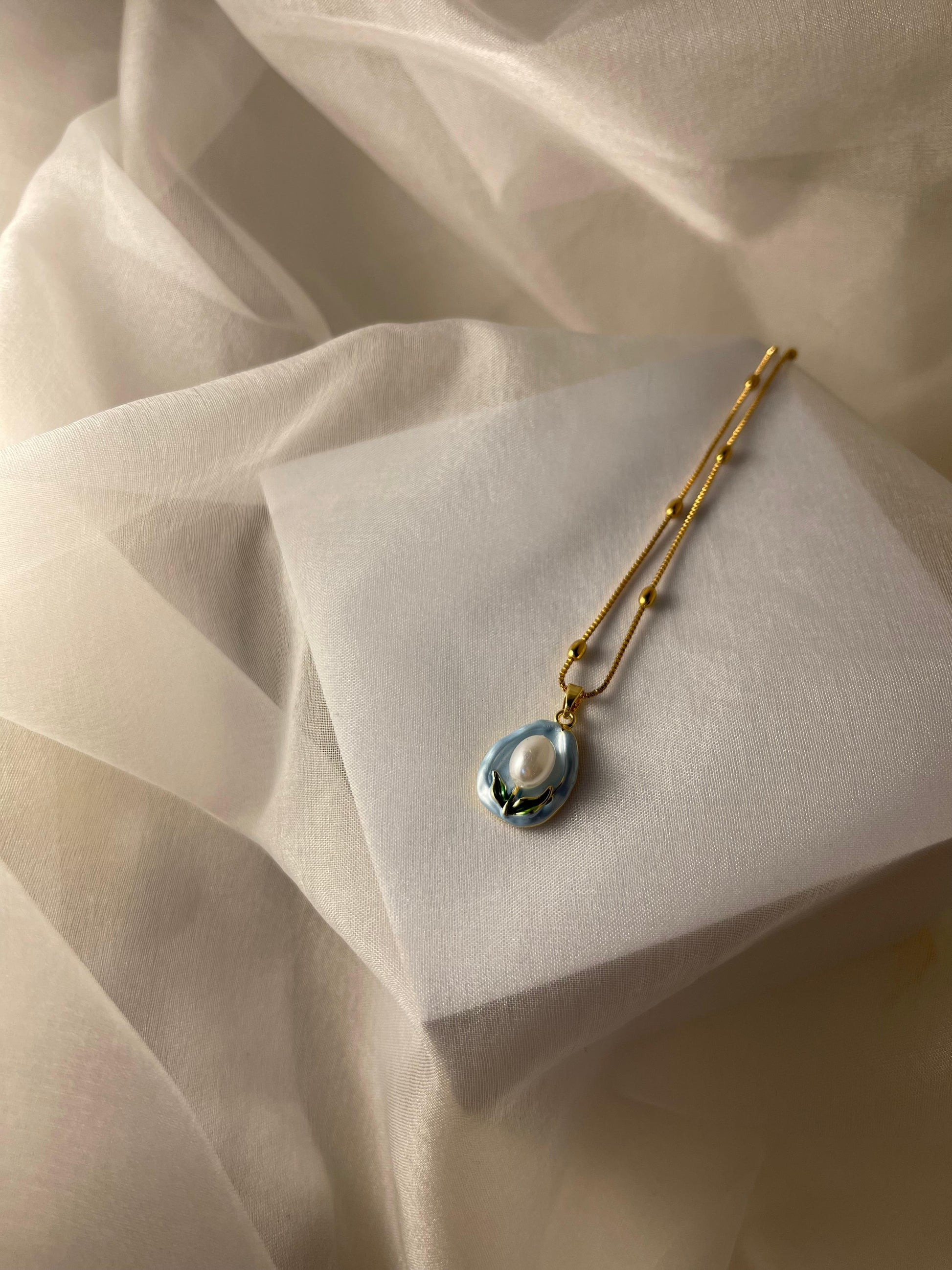 Enamel pearl necklace(Ocean Pearl)-blue