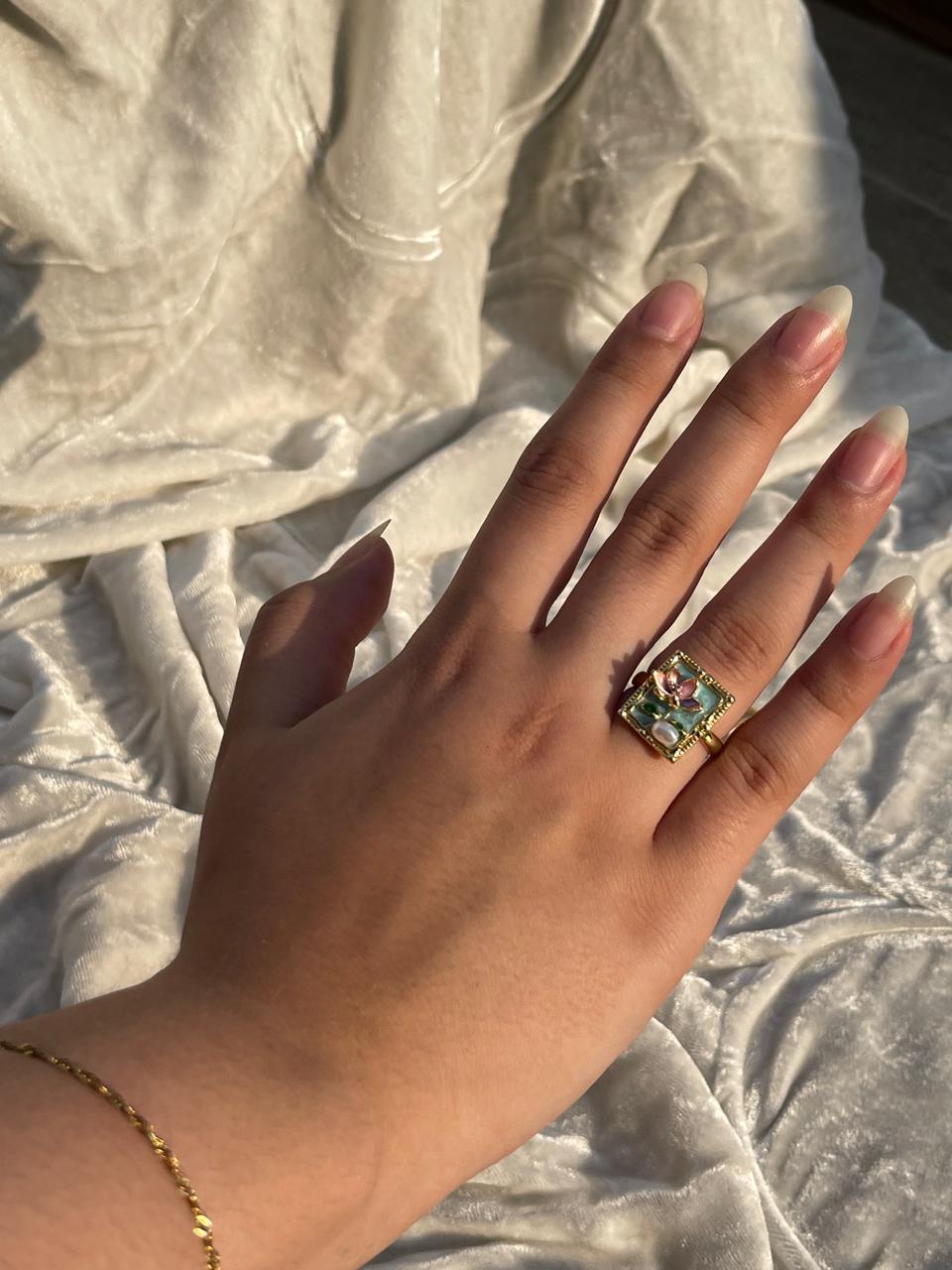 Enamel pearl ring (turquoise-flower bead)