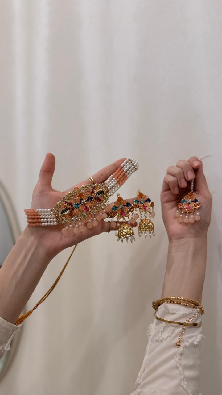 Husn-e-moti choker set Peach