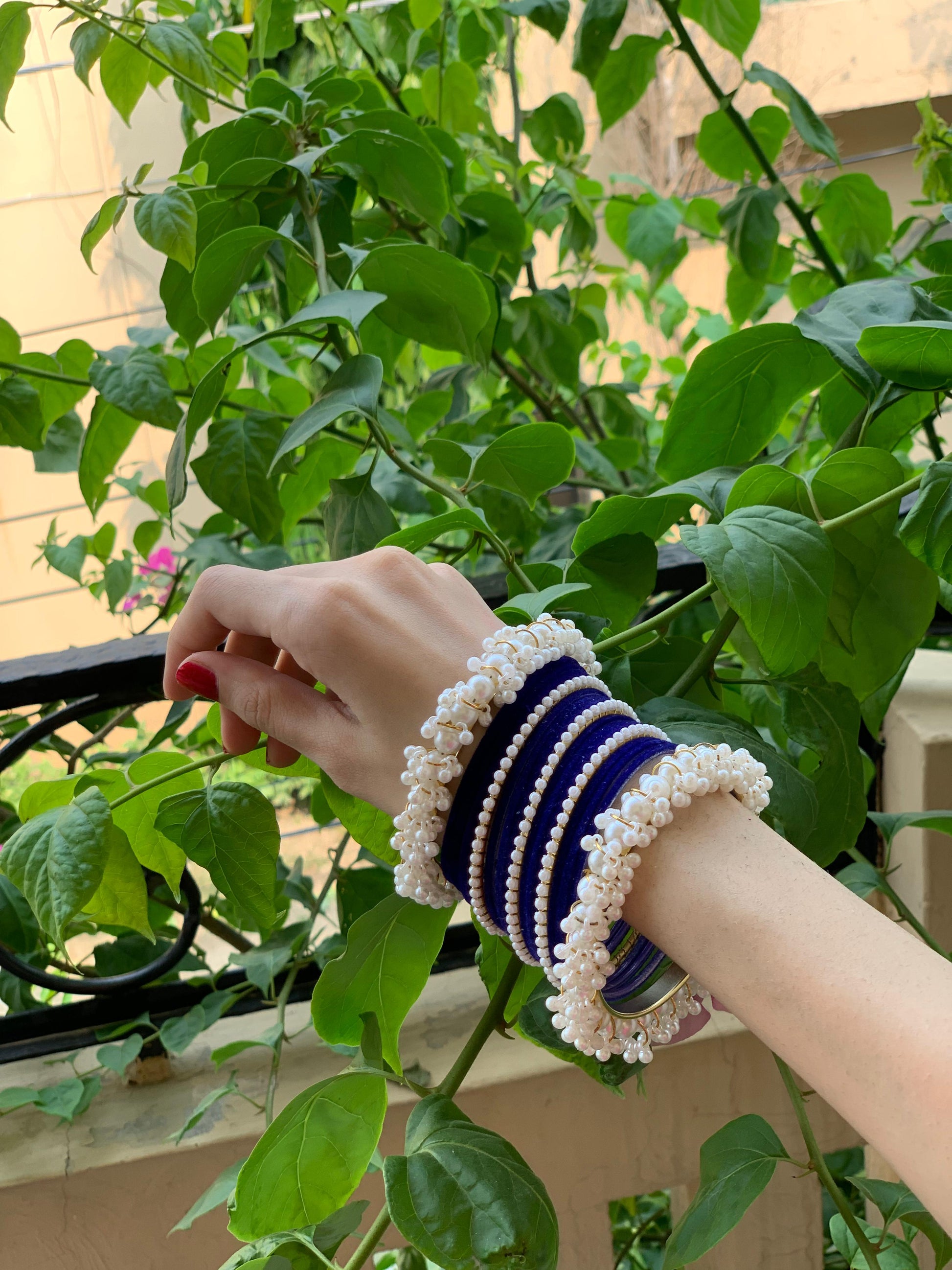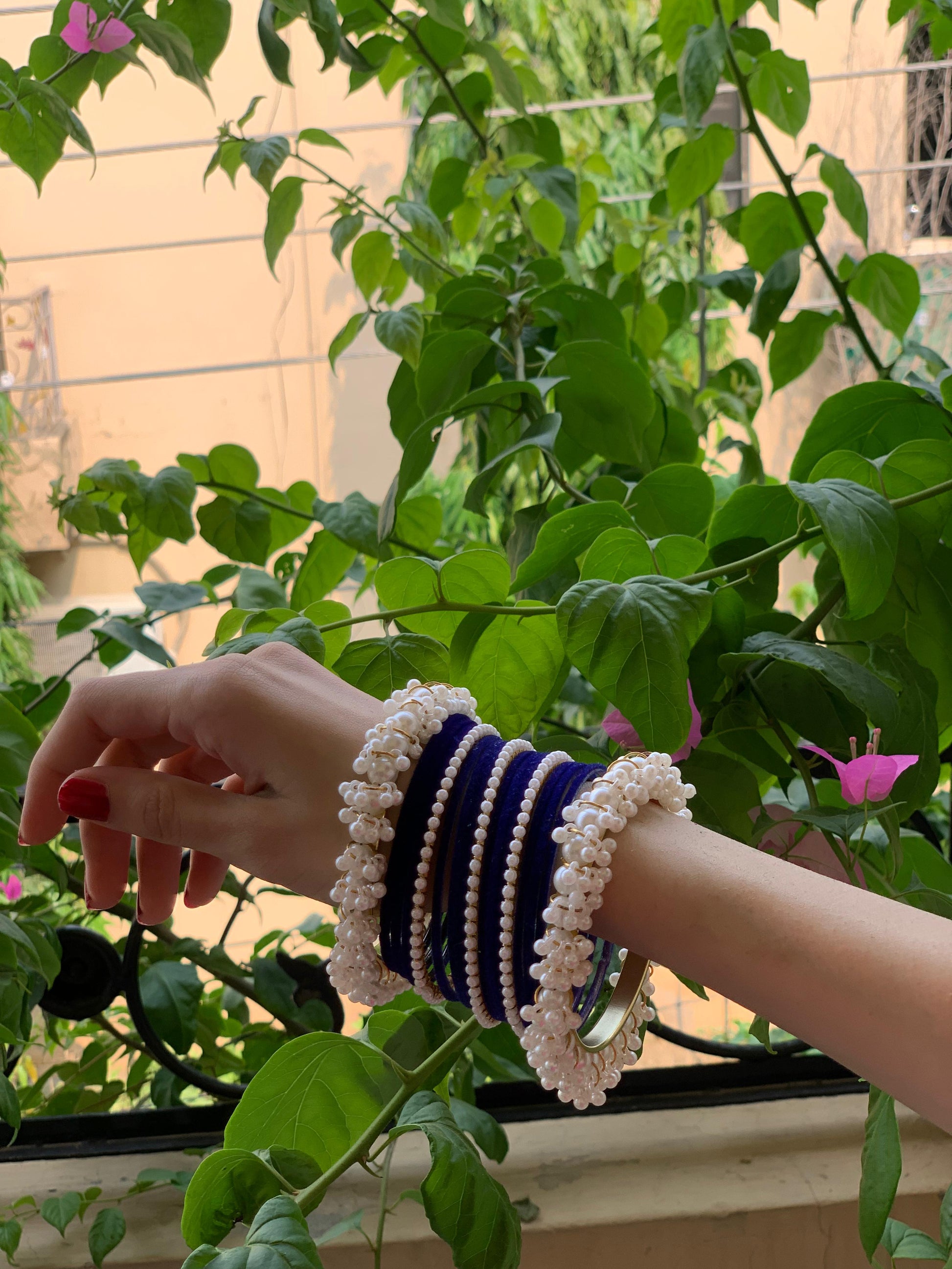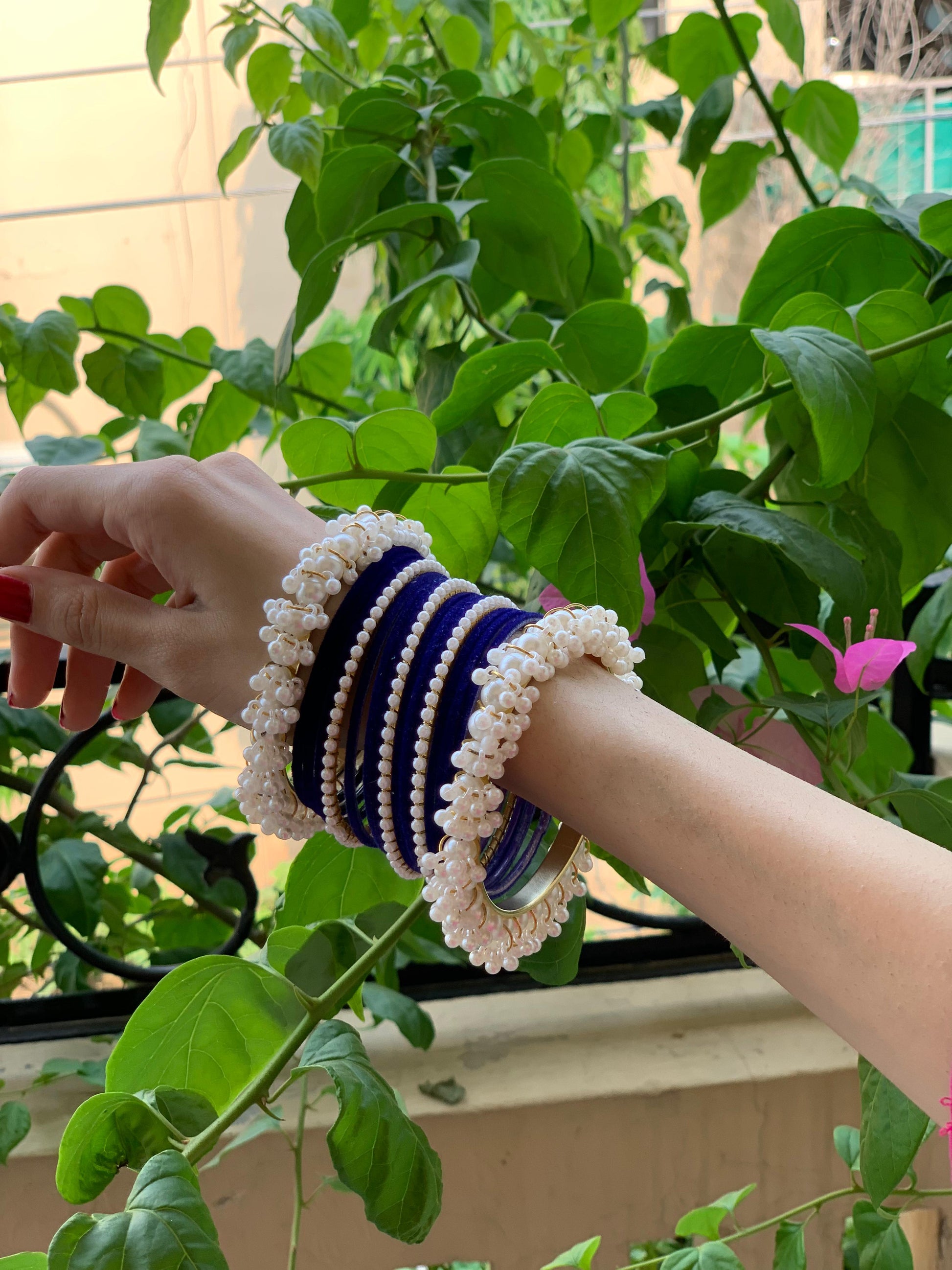 Moti and velvet set - Dark Blue
