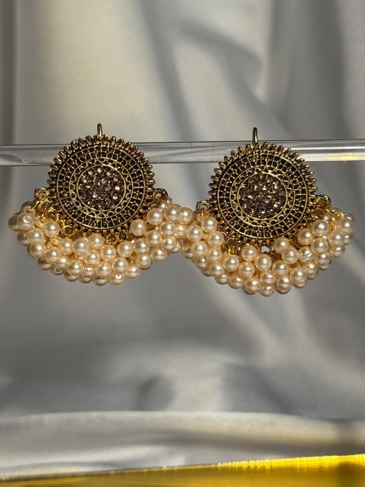 jhumkay earrings boast a luxurious design, elevating any outfit with their intricate details and captivating shine. Embrace the allure of sophistication and elevate your style with these premium golden earrings.