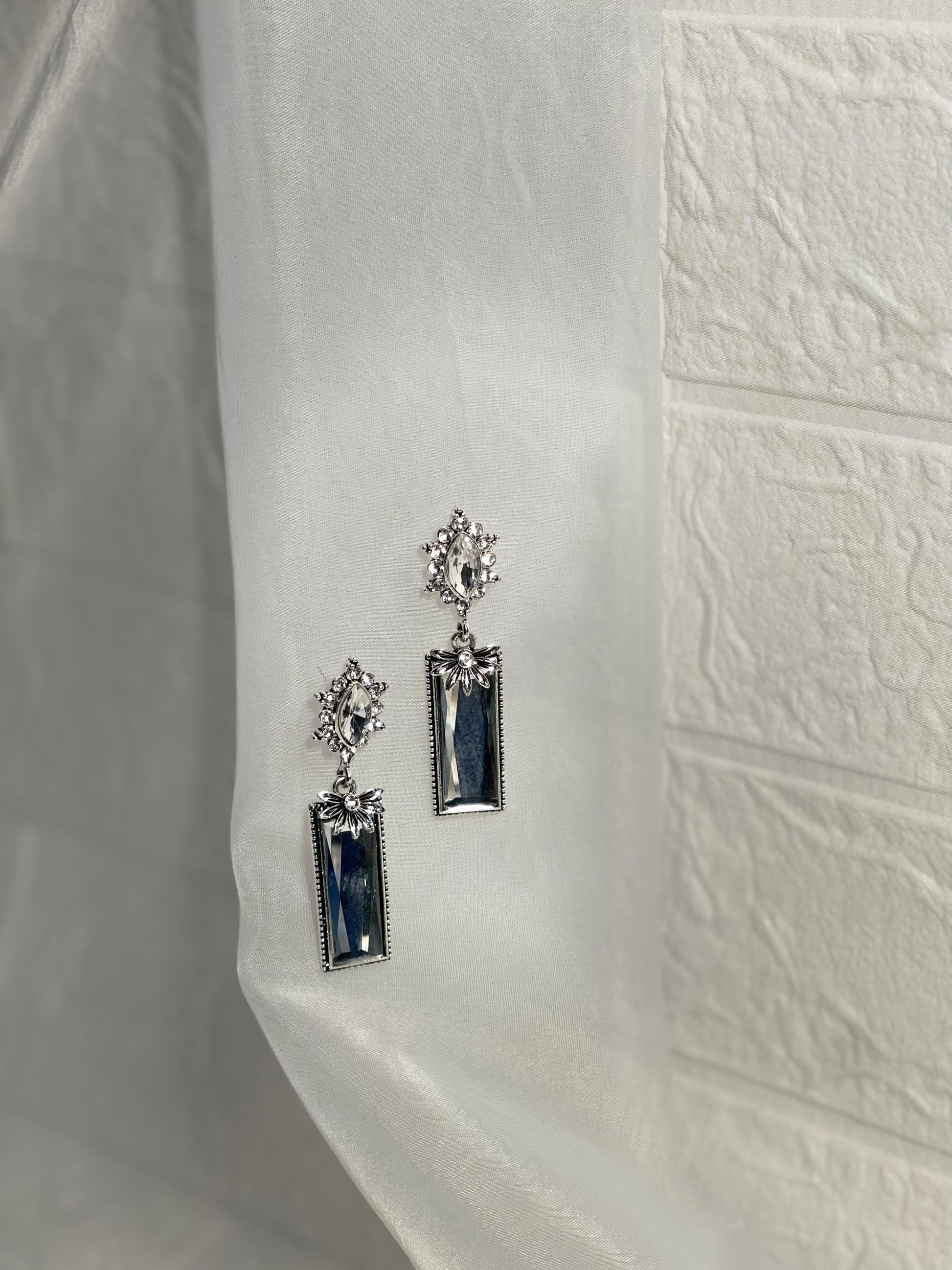 Rectangle Half Floral Earrings Silver – Baharbano Elevate your everyday elegance with these refined rectangle half floral earrings, where intricate botanical detailing meets timeless silver craftsmanship. Each piece showcases delicate floral motifs that catch the light beautifully, creating a subtle yet striking statement. The geometric rectangle silhouette paired with organic floral elements offers a sophisticated balance—perfect for those who appreciate understated luxury. Versatile enough for both formal occasions and refined casual wear, these earrings embody the artisanal quality that defines the Baharbano collection.