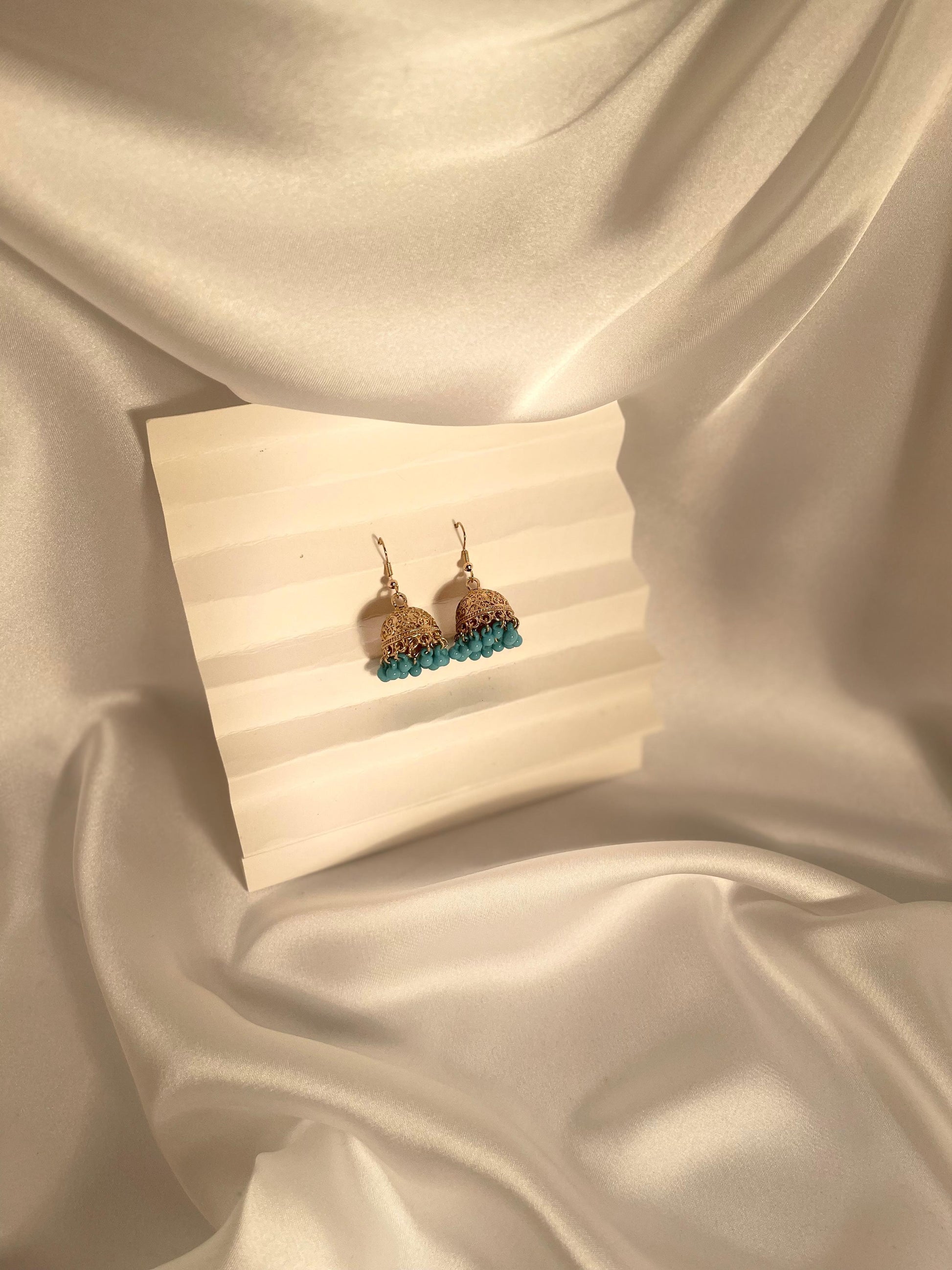 Tania gold Jhumki (sky blue beads)