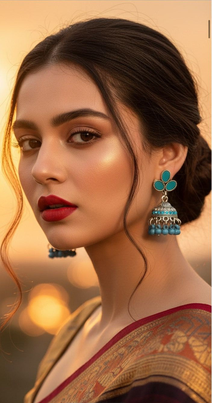 Teen Booti earrings are a beautiful way to celebrate tradition while staying comfortable throughout your day. Their lightweight design ensures you can wear them for hours without any discomfort. Whether you're dressing up for a special occasion or adding elegance to your everyday look, these jhumkis support your style with a touch of timeless charm.